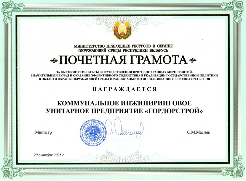 Почётная грамота (За высокие результаты в природоохранных мероприятиях за 2025)